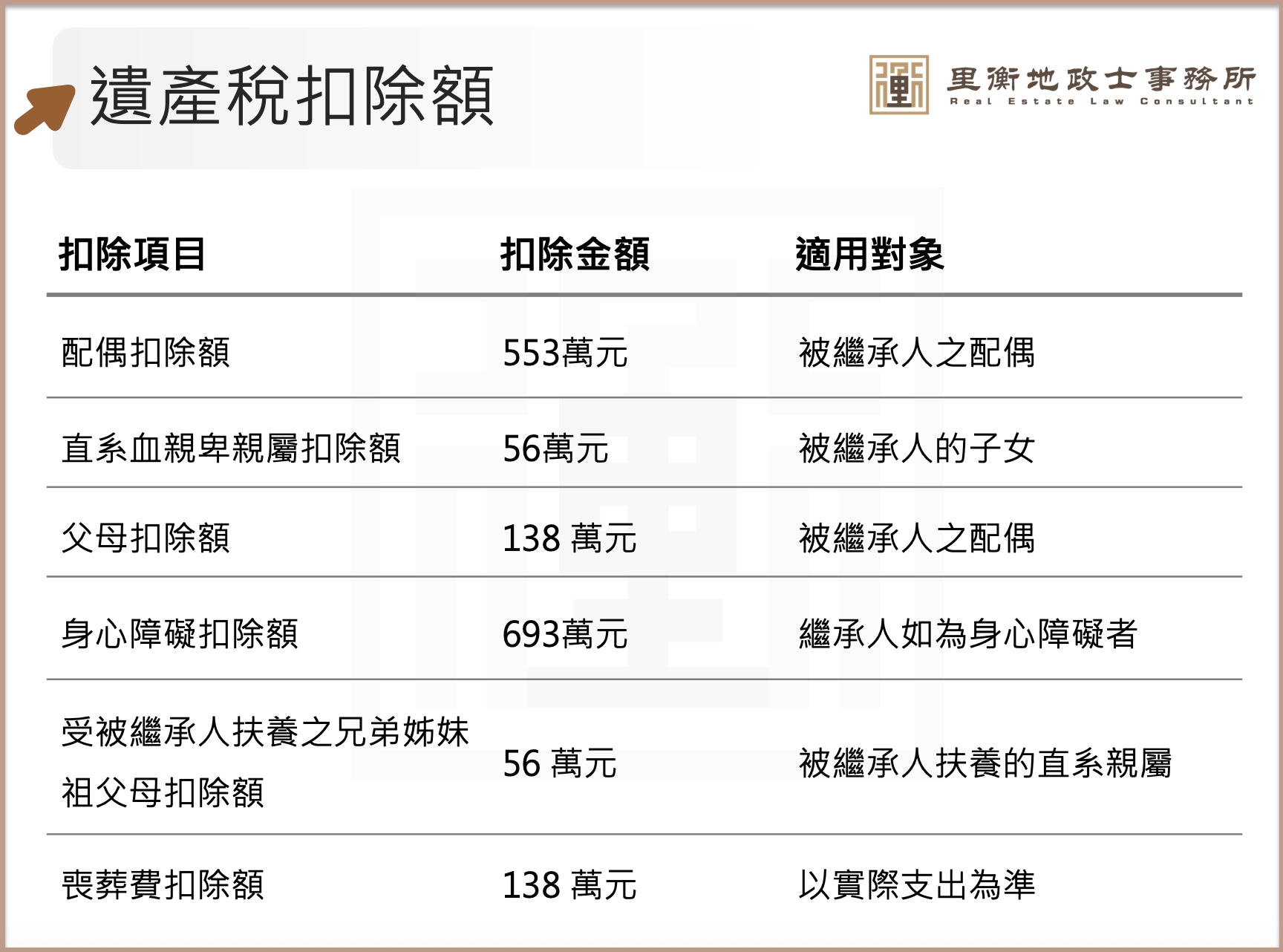 · 配偶扣除額:553 萬元
