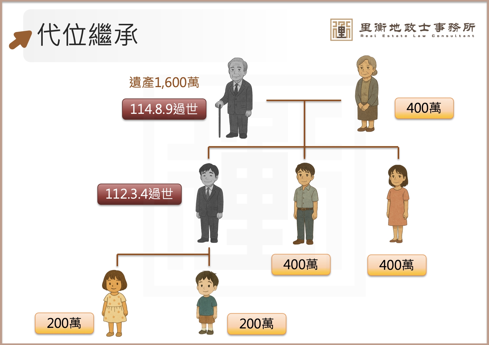 長孫及長女代位長子繼承,各得 200 萬。